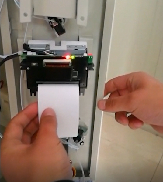 1.首先将红外线扫码智能寄存柜的打印机中的纸片轻轻取出,注意不要使纸片破损