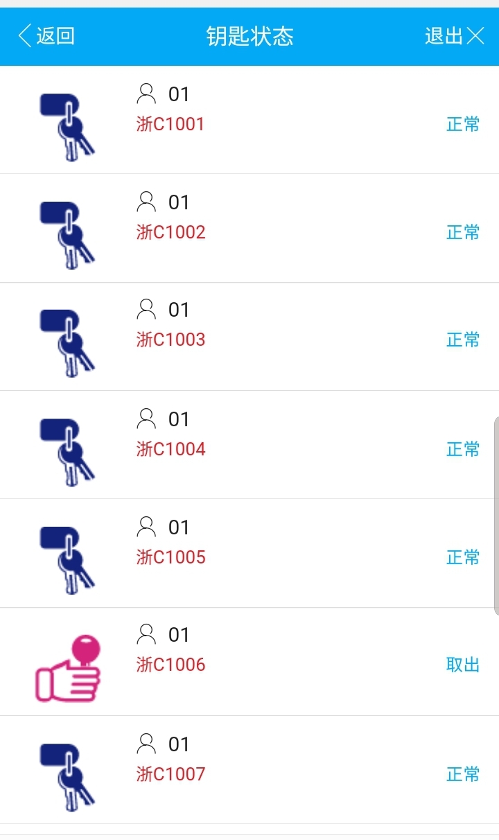 可以查看当前钥匙柜的所有钥匙的存取状态