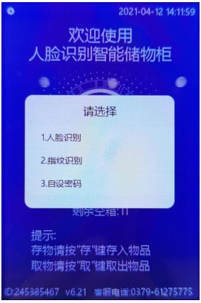 4寸液晶屏人脸识别智能储物柜产品技术说明下(蓝色界面)
